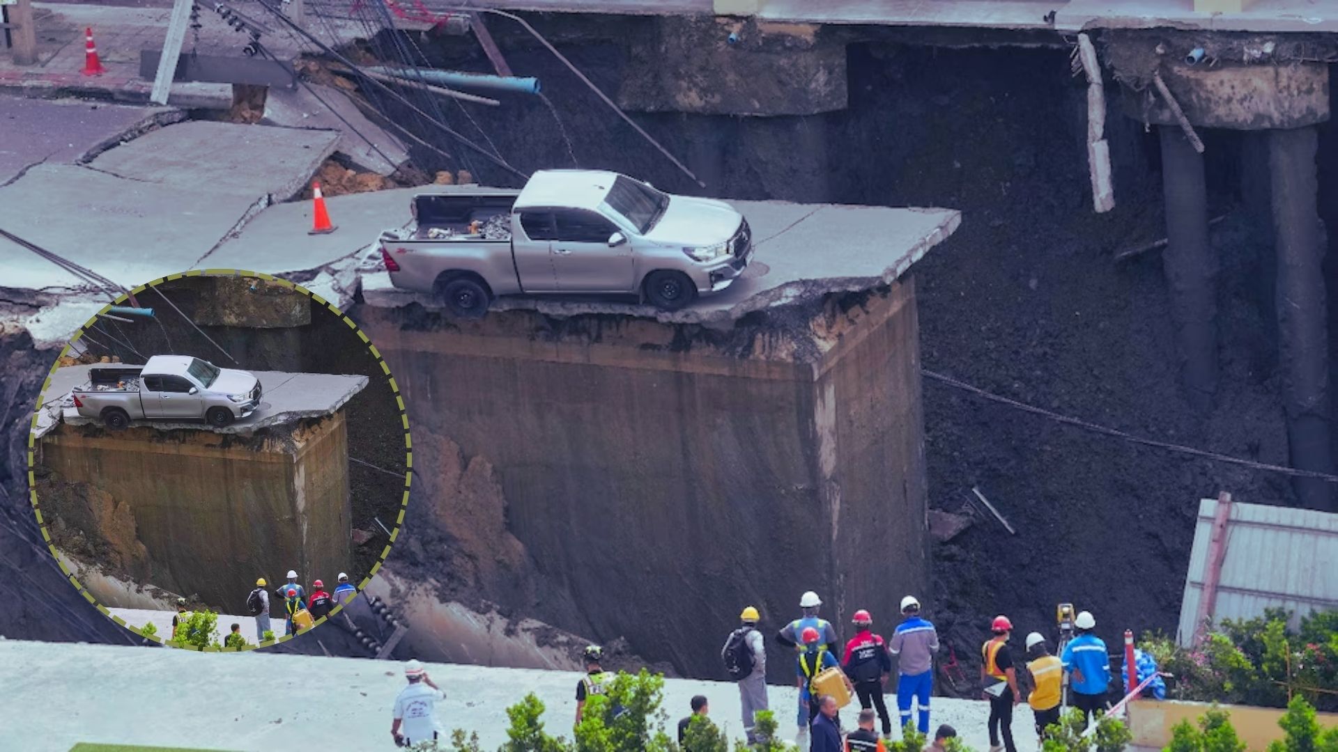 बैंकॉक में सड़क अचानक धंसी, 50 मीटर गहरा गड्ढा बना रोड